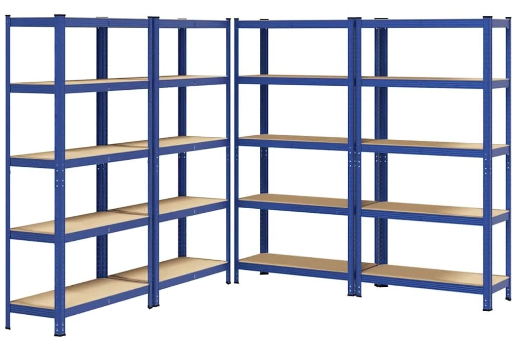 Tutaj sprawdzają się regały modułowe z pełnymi ścianami bocznymi i metalowymi półkami o dużej nośności.